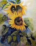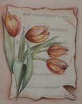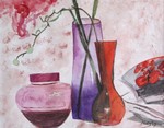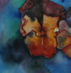 2000Clematis in aquarel en gespetterd met pigment poeder