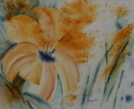 2000Gele bloem fantasie. Aquarel nat in nat.